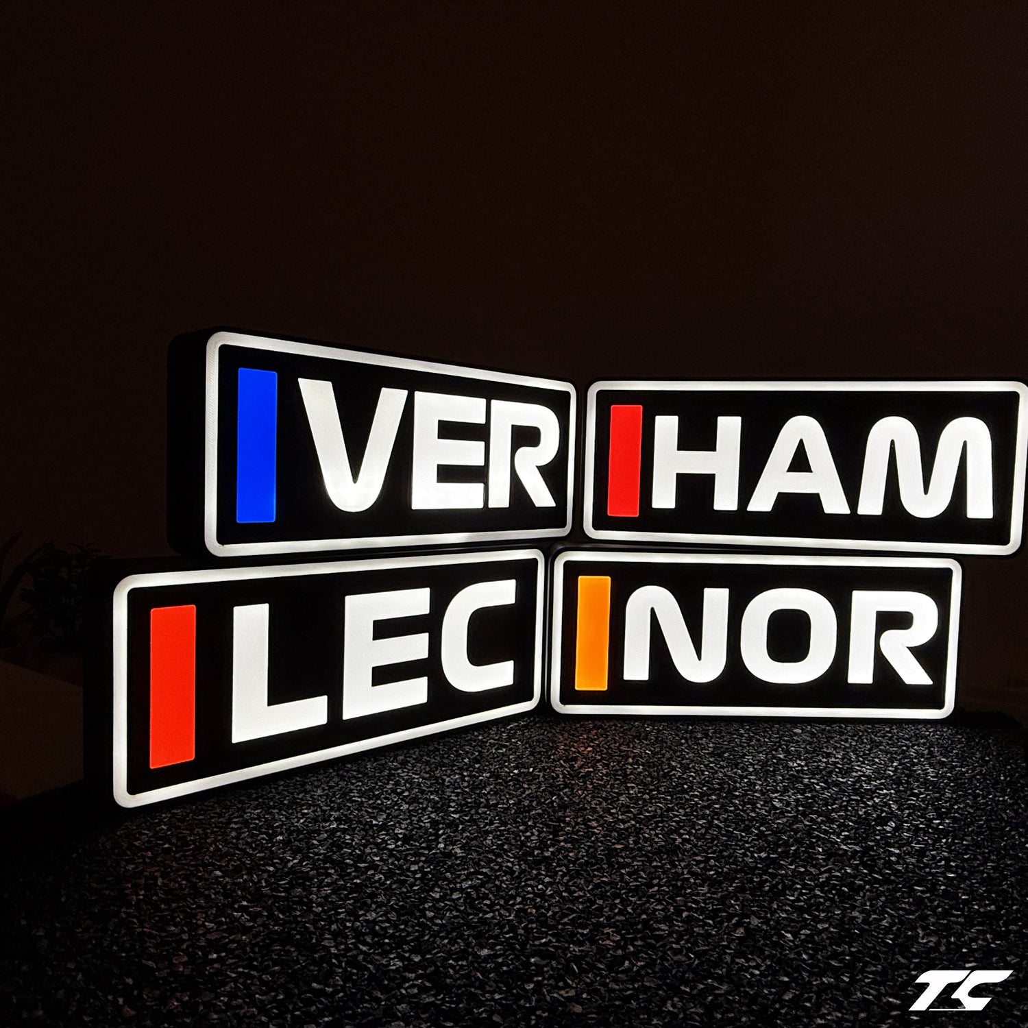 Illuminate your space with the energy of F1! Our LED lamps feature the initials of your favorite drivers. Perfect for any room, these lamps make a great gift for any enthusiast.