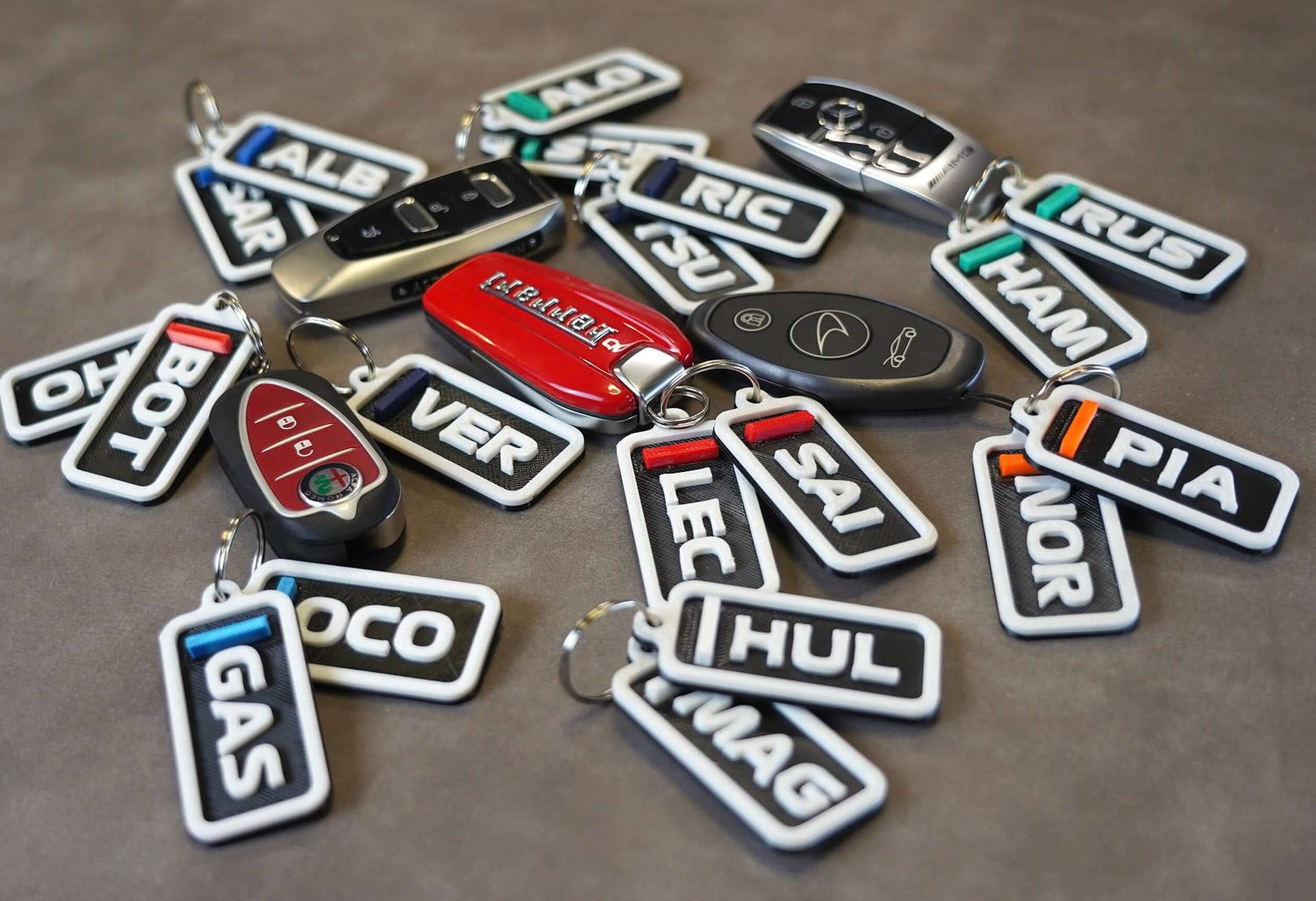 Grab your keychain by choosing from the current drivers and the legendary icons paired with F1-themed tires keychains. Carry your passion for formula one with you wherever you want